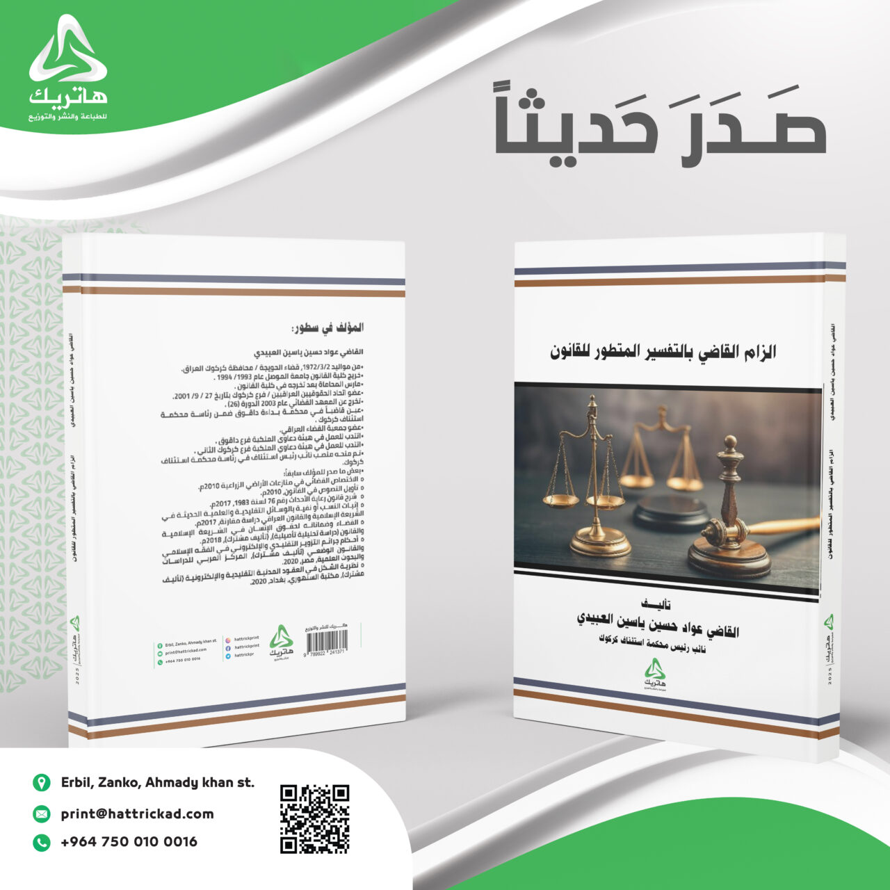 كتب القانونصَدَرَ حَديثاًللمؤلف: القاضي عواد حسين ياسين العبيديبعنوان : الزام القاضي بالتفسير المتطور للقانون